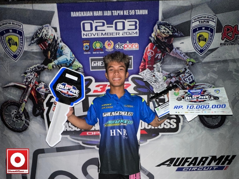 OtomotifZone.com – Tapin. Aufar MX Grasstrack Motocross sirkuit Aufar, Binuang, Tapin, Kalimantan Selatan 2-3 November 2024 berlangsung cukup seru karena pembalap top hadir ke sirkuit yang dimiliki Ahmad Aufar ini di hadiri rider-rider top dari berbagai wilayah. Menyoroti kelas Grasstrack Open ada sosok Grasstracker edan musim ini. Siapa lagi kalau bukan M. Zidane Alnesha.