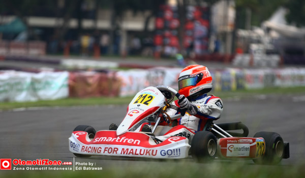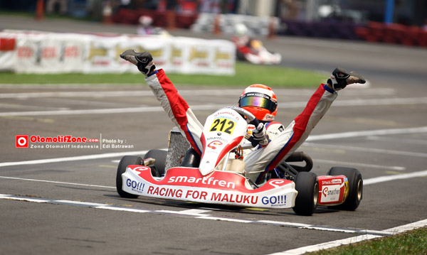 OtomotifZone.com-Sentul. Dengan penuh kepercayaan diri yang tinggi dalam diri David Juliano Sitanala dalam pergumulan dan persaingan ketat Junior max diajang Rotax Max Challenge seri 4 yang digelar di sirkuit kecil Sentul menjadi pelecut nyong ambon manise ini untuk tampil allout dan geber abis meninggalkan rival-rivalnya di partai final.