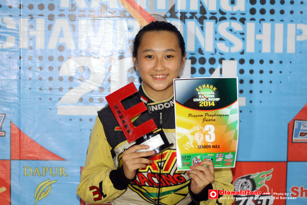 OtomotifZone.com-Sentul Bogor. Dari 14 pegokart yang andil di ajang Kejurnas Eshark Karting 2014 seri 2, 1 diantaranya adalah dara cantik asal team TKM Racing, untuk yang belum kenal ini OZ kenalin, namanya Kezia Santoso. Doi baru naik kelas lho setelah menimba ilmu di Eropa selama 3 bulan balik ke Indonesia langsung terjun di kelas senior. Itupun turun pertama kali di putaran akhir atau putaran 5 RMC Indonesia 2014 September lalu dan penampilan pertama di ajang Kejurnas Eshark Seri 1.