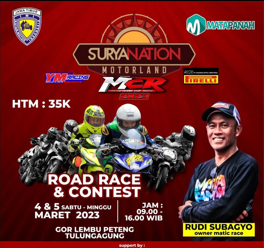 Matapanah event organiser sebagai penyelenggara event menggelar 27 kelas yang kan dilombakan 2 hari, Sabtu-Minggu, 4-5 Maret 2023 di sirkuit NP Gor Lembu Peteng kota Tulungagung, Jawa Timur.