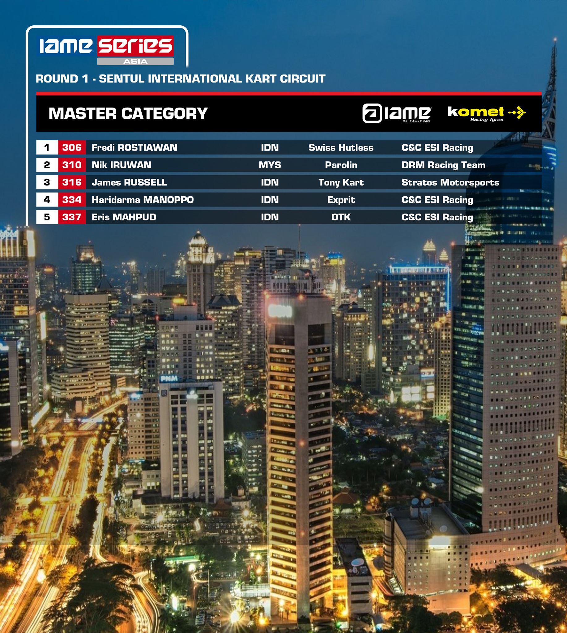 Sementara 3 pegokart Indonesia turun dikelas Master seperti Eris Mahpud, Haridarma Manopo dan Fredy Rostiawan akan melawan pegokart Malaysia.