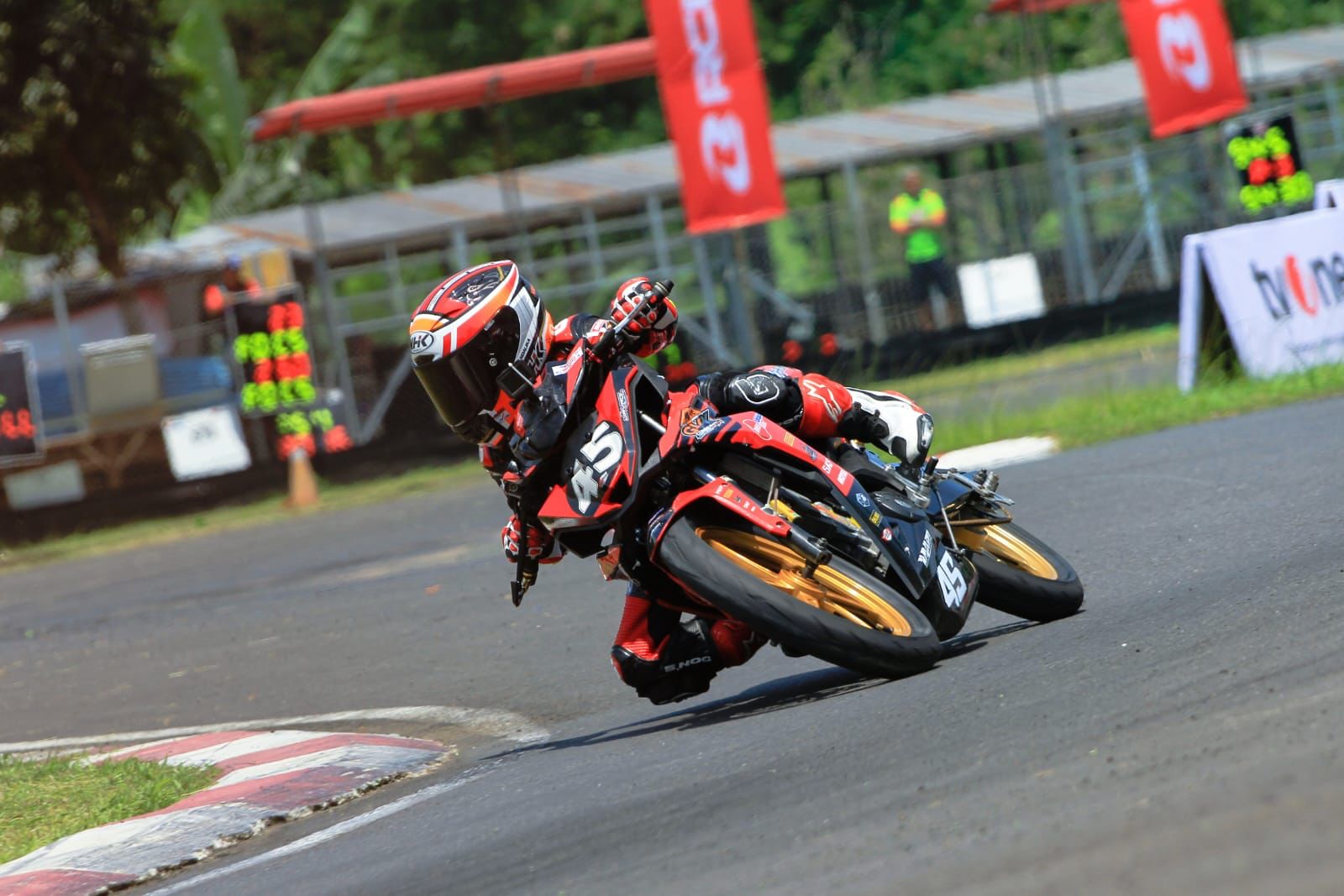 “Alhamdulillah walau pertama kali balap disana, adaptasi Abimanyu dan Badly sangat cepat namun mereka harus terus memperbaiki catatan waktunya di setiap lap. Dengan adaptasi yang cepat dan semua persiapan dari tim, kami optimis untuk bisa memberikan hasil yang maksimal dan pebalap kami juga suka dengan karakter sirkuit Sabaru Kalimantan Tengah ini” ungkapnya.