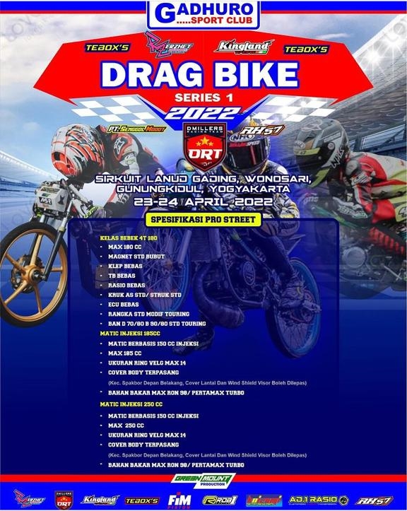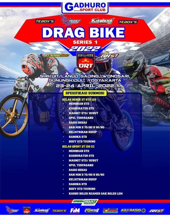 Otomotifzone.com – YOGYAKARTA. Minggu ini di Sirkuit Non Permanen Lanud Gading, Wonosari, Gunung Kidul, Yogyakarta (23-24/4/2022). Gadhuro akan menghelat sebuah pagelaran akbar balap motor roda dua, drag bike 201 meter.