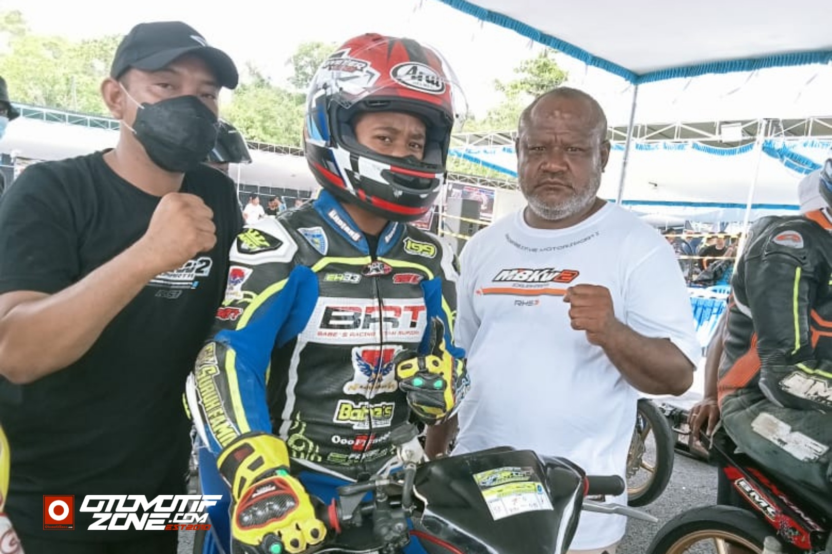 OtomotifZone.com – Timika. Peningkatan pesat pebalap wanita Sopiori ini sangat terlihat. Pada gelaran Jasti Putra akhir pekan kemarin terlihat Beatrisk Warikar menjajal turun dikelas Novice bersama pebalap pria dengan MX King dengan motor garapan MBKW2. Anak wanita dari Erick Warikar memang sengaja di tunggangi motor Novice. Yang mana nantinya akan diproyeksikan untuk tarung di pulau Jawa. Pendidikan terus diberikan D45 selaku sekolah balap yang dia tempati