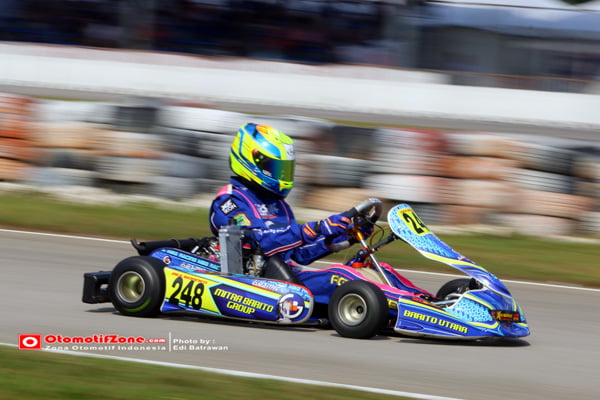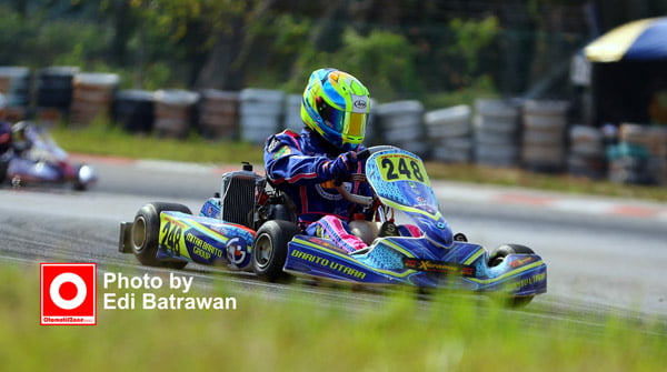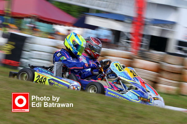 “memang seri ini bukan target saya dan team, namun harapan muncul ketika hasil selama race ada progress, pinginnya sih pecahin telor podium di seri AMC pada penampilan perdana, ternyata gokart saya ditabrak dari belakang dan saya harus pasrah dengan lepasnya knalpot”, papar Agi Borneo diamini Budi Rusman sang mekanik.