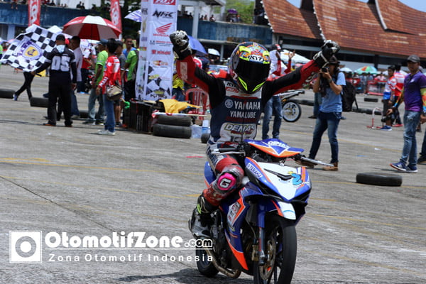 OtomotifZone.com-Padang. Perjuangan keras pembalap asal Aceh yang bernaung dibawah team Yamaha Yamalube Denas Kyt fdr Hr Kyb hds acc Padang berhasil menjadi yang terbaik di final kelas MP 1 Bebek s/d 150 cc 4 tak Tu Seeded.
