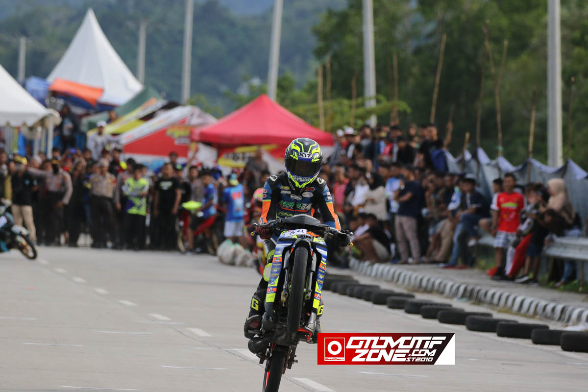 OtomotifZone.com-Mamuju, Sulbar. Pembalap berwajah imut asal Palu Sulawesi Tengah Ahmad Doddy meraih gelar juara umum kelas 2 Tak lover diajang Kejurda AIM Balap Motor Kapolresta Cup 2019 putaran 3 Mamuju garapan Q Racing Product.