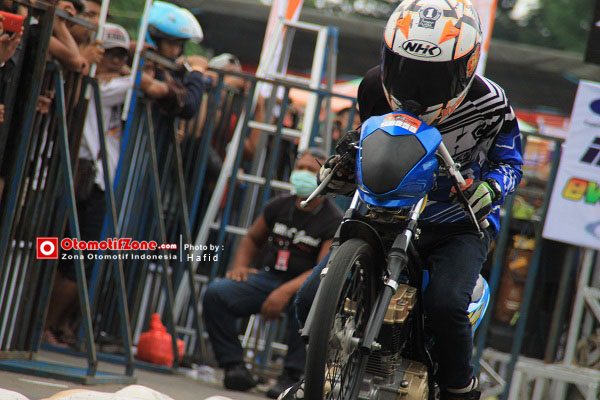 OtomotifZone.com-Boyolali. Event bernama Ahrs Indonesia Drag Championship 2015 Drag Bike Seri I Sirkuit Alun-Alun Boyolali Minggu, 8 Maret 2015 bisa dikatakan seperti puncak event menurut sebagian pembalap. Mereka selama dua bulan bermain di event daerah masing-masing seperti di Jateng dan Jatim yang hampir tiap minggu ada drag bike. Mungkin kualitas event atau kerapian scrut yang sangat ketat tentang kedisiplinan untuk para pembalap yang bertanding. Bobot pembalap benar-benar di timbang supaya pas dengan regulasi. “Selain itu ruang start juga bebas dari orang-orang yang tidak berkepentingan mas, itu yang membuat pembalap nyaman,” ungkap Hendra Kecil yang sekarang sudah tidak kecil lagi.. Kecil apanya? Ya orangnya lah. hehe