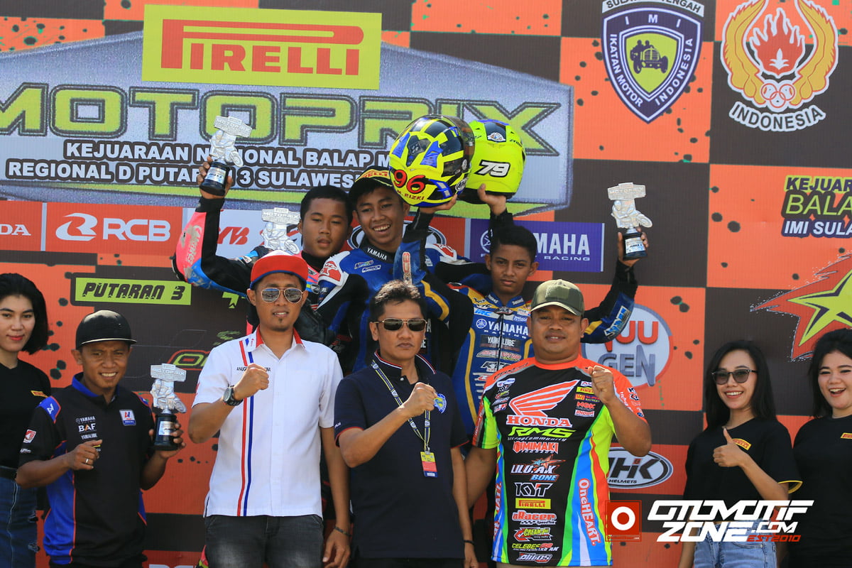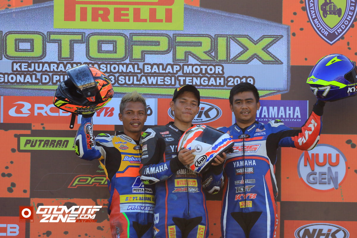 OtomotifZone.com-Palu. Setelah race 1 merebut 2 kelas Kejurnas yang digelar Sabtu kemaren (5/10), hari Minggu ini team yang bermarkas dikota Palu ini sapu bersih semua race kelas kejurnas dengan raih podium tertinggi dikelas expert, Novice dan Rookie.