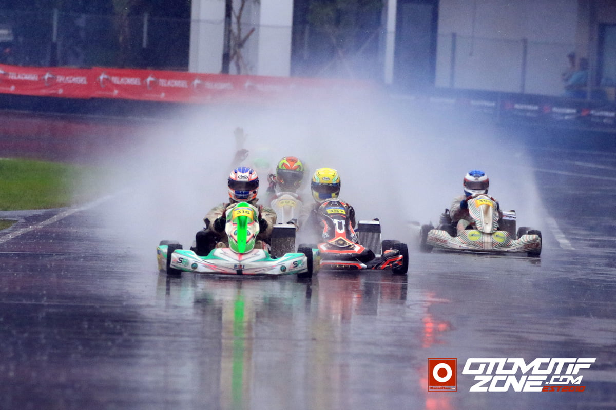 Sempat tertunda hampir 1 jam lamanya karena derasnya hujan di sirkuit Sentul Karting dan ada beberapa bagian track yang tergenang, laga final akhirnya tetap digelar sebanyak 25 putaran dengan kondisi wet race.