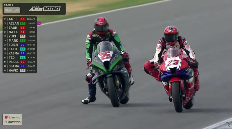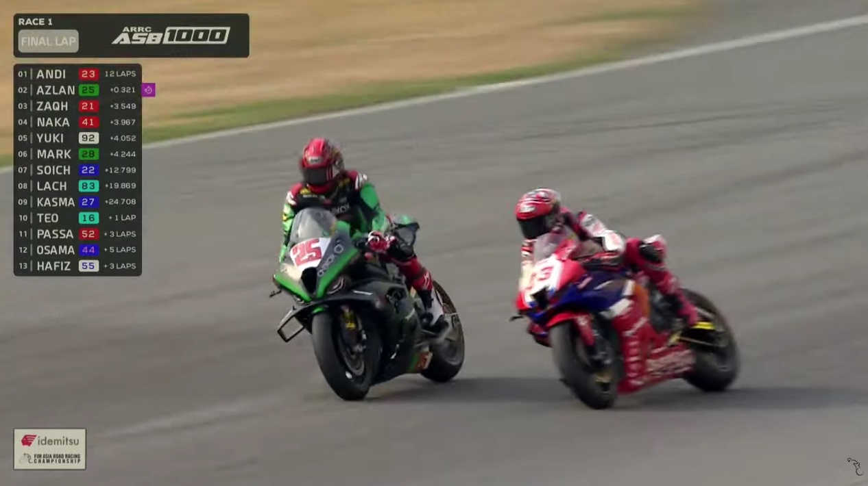 Lap akhir sedikit mendebarkan karena Azlan mendekat dengan sangat cepat. Lap penentuan di tikungan akhir. Azlan Syah overtake Andi Farid dengan bersih walau keduanya sama-sama out.