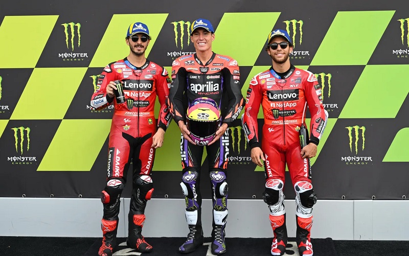 OtomotifZone.com – Inggris. Pembalap Aprilia Racing Aleix Espargaro berhasil mencetak pole position di ajang MotoGP Silverstone hari ini 3 Agustus 2024. Dia menjadi pemimpin grid dengan catatan waktu 1’57.309. Penampilan gemilangnya menempatkannya di depan duo Ducati, Francesco “Pecco” Bagnaia dan Enea Bastianini, yang masing-masing menempati posisi kedua dan ketiga.