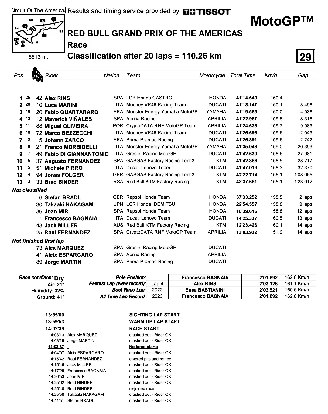 Ketenangan Rins membawa hasil istimewa. LCR Honda yang puasa cukup lama tidak juara kali ini kembali merasakan tangga juara. Terakhir mereka lewat Cal Chrutclow podium pertama di Argentina 2018. Alex Rins benar-benar penyelamat Honda yang semua ridernya tumbang tak bisa finish di Cota.