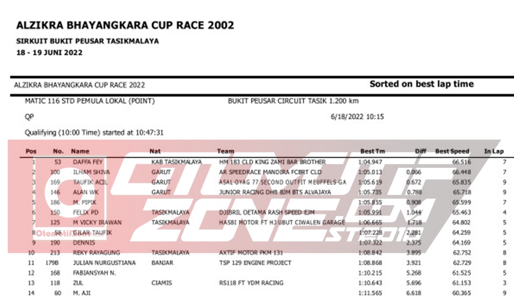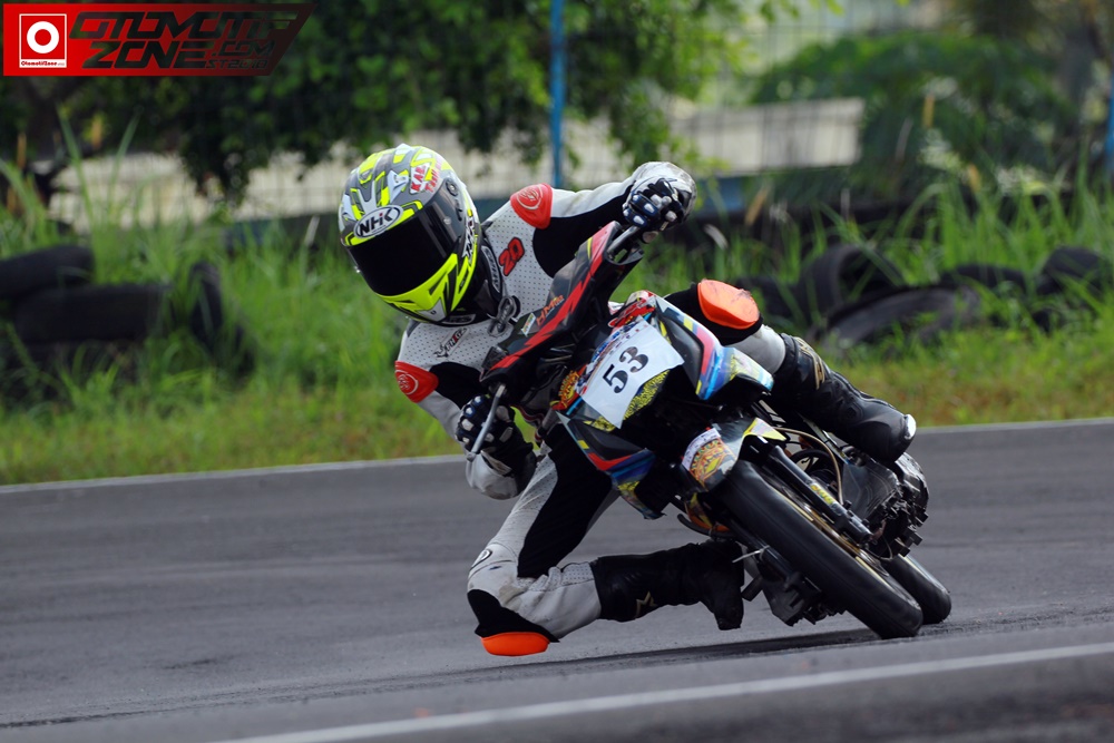 Tenang dan santai, ini yang terlihat dari mata tim redaksi saat Daffa Fey menjalani kualifikasi Matic 116 Lokal. Daffa mampu menjadi yang tercepat dibabak ini. Pebalap yang juga bermain diajang Kejurnas ini mampu meraih catatan waktu 1.04.947 detik. Raihan ini mampu mengantarkan dirinya berada di grid terdepan saat race besok. Nampaknya keseuran akan tejadi pada race esok.