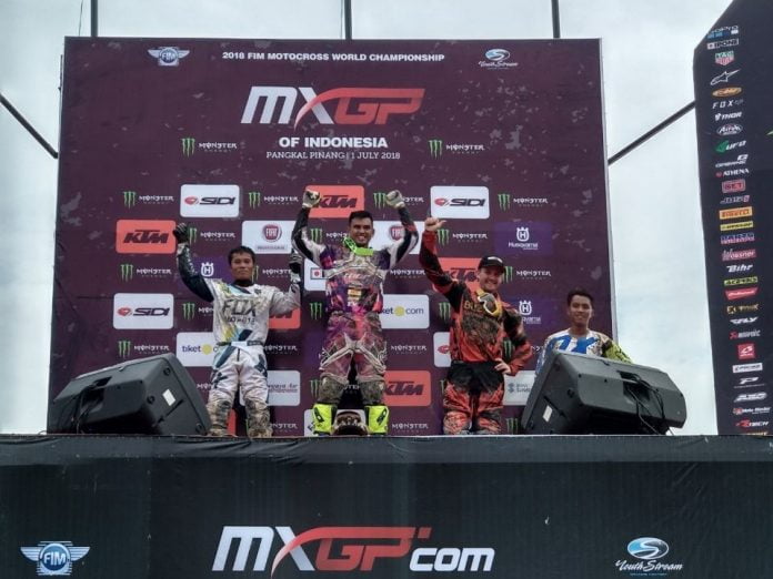 OtomotifZone.com – Jakarta. Andalan SSS bercahaya di Kejuaraan dunia MXGP (1/7) di Sirkuit Gor Sahabuddin Pangkal Pinang, Indonesia . Novi Indrian mampu menjuarai MX2 Open. Ketangguhan pembalap asal Bangka Selatan itu patut diacungi jempol.