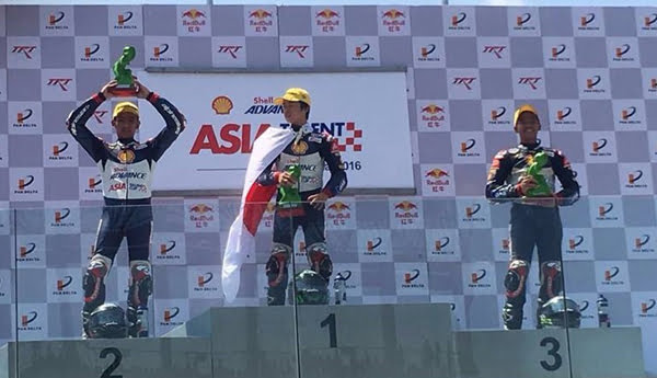 OtomotifZone.com-Jakarta. Andi Farid Izdihar atau Andi Gilang dan Gerry Salim sukses mempertahankan tradisi podium pada ajang Asia Talent Cup (ATC) 2016 yang berlangsung di Zhuhai International Circuit, China (17-18/9). Podium tersebut kian memperpanjang prestasi pebalap muda Indonesia di kancah balap international untuk memberikan kebanggaan bagi bangsa.