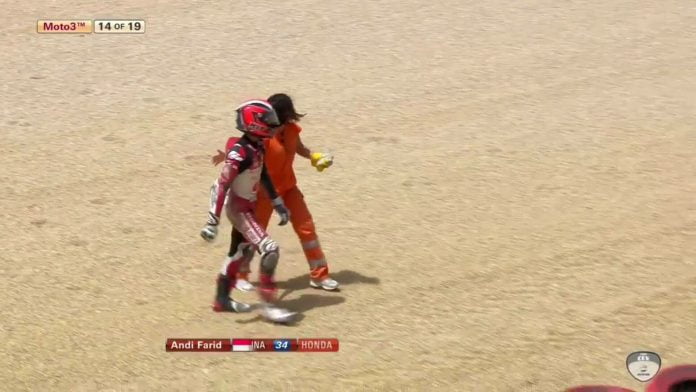 Andi yang bergabung dengan tim Astra Honda, start di posisi kedua mengalami nasib kurang baik setelah terjatuh di lap ke-14 dan tidak bisa melanjutkan balapan. Saat itu, Andi berada di posisi keenam dan di barisan grup pembalap terdepan memperebutkan posisi pertama.
