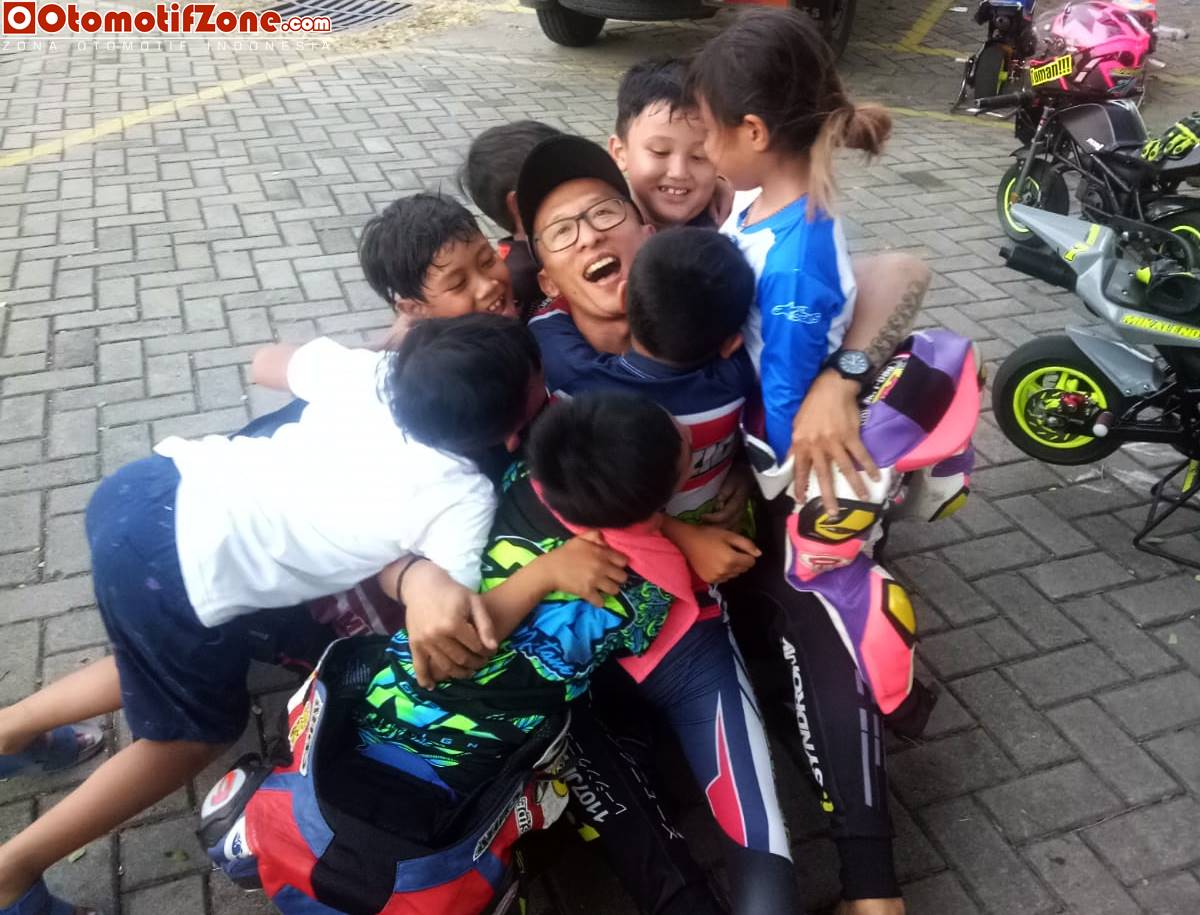 “ Ya kemarin kita mengajak 8 anak didik saya untuk main di SUNMORI Mini GP. Alhamdulillah anak didik saya borong penghargaan. Dari tiga kelas yang dilombakan, kita meraih penghargaan dari ketiga kelas itu,” ujar Arie Ocktane langsung kepada OtomotifZone.