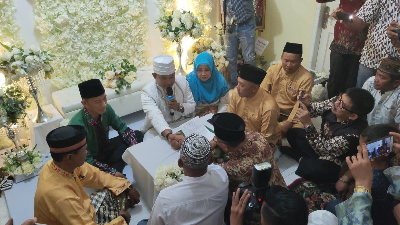 Setelah melakukan ijab qabul, kedua mempelai menandatangi buku nihak dan mempelai pria menyerahkan mas kawin dilanjutkan cium tangan dari pihak mempelai wanita dan Arissandro mencium kening sang istri sahnya.