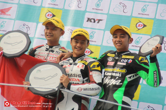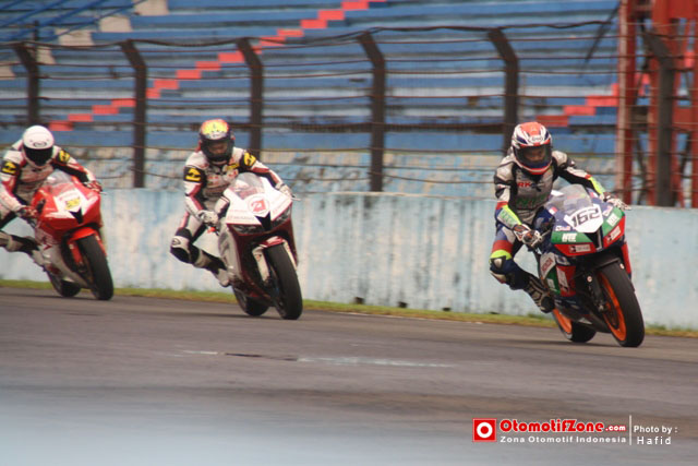 OtomotifZone.com – Sentul, Bogor. Seri kali ini para pembalap SuperSports 600cc Indonesia benar-benar fight. Para pengamat balap motor menilai kondisi hujan adalah lintasan dimana para pembalap Indonesia jago dan ahlinya. Benar saja. Race 1 jagoan sentul M. Fadli Imanudin bisa memimpin jauh saat lintasan benar-benar basah. Di menit-menit akhir dia berhasil di susul Zamri Baba dari Malaysia. Tapi tak lama kemudian Fadli berhasil mengajak duel Baba di beberapa tikungan terakhir yang membuat Baba agak out. Tak disia-siakan, Yudhistira menyodok posisi 2 mengikuti Fadli hingga finish sehingga membuat penonton bersorak histeris.