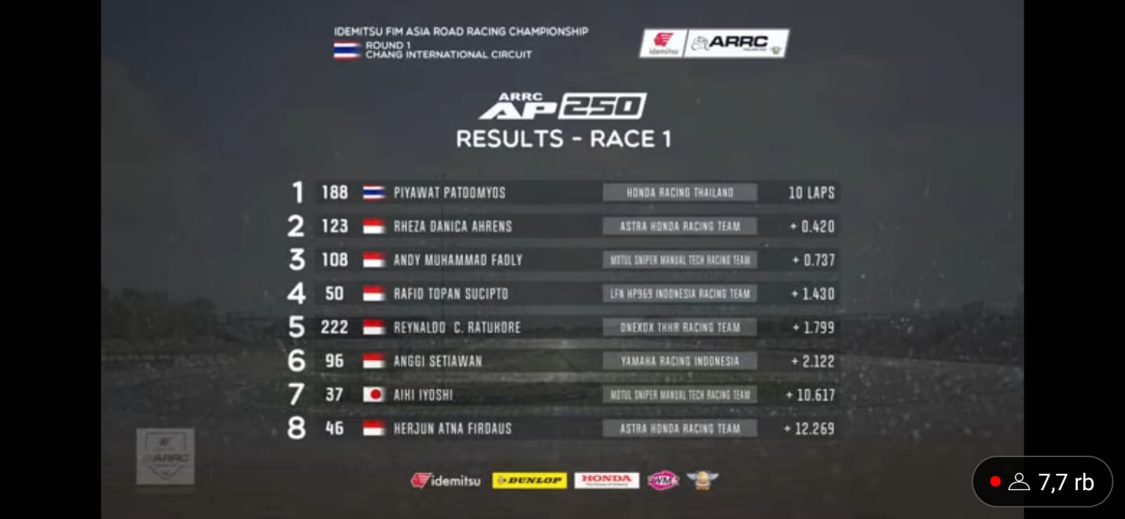 Pada kelas AP250 memang banyak sekali pebalap Indonesia yang ikut ambil andil dalam perlombaan ini. Mereka berlomba dengan tim yang berbeda. Selain ingin membawa nama baik tim yang mereka bela, perebutan terjadi terhadap pebalap untuk kibarkan merah putih terjadi.