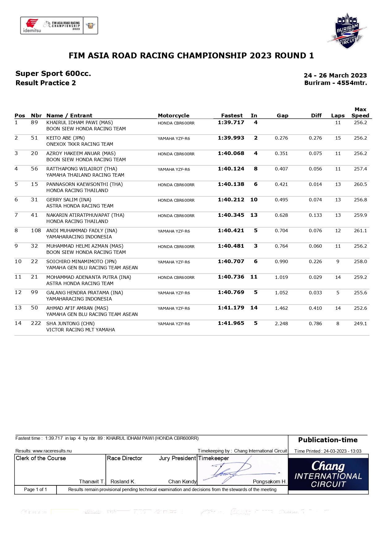 Pertanyaan ini wajar adanya karena para tim pastinya terus melakukan Evaluasi agar menjadi yang terbaik saat race nanti. Termasuk pebalap Indonesia yang turun dikelas SS600 ini. Mereka ingin menjadi yang terbaik dan memanfaatkan sesi latihan resmi ini dengan sempurna. Ini semua agar mereka bisa bertarung dibarisan depan. Lalu pada sesi FP2 ini berapa saja posisi pebalap Indonesia? Berikut hasilnya: