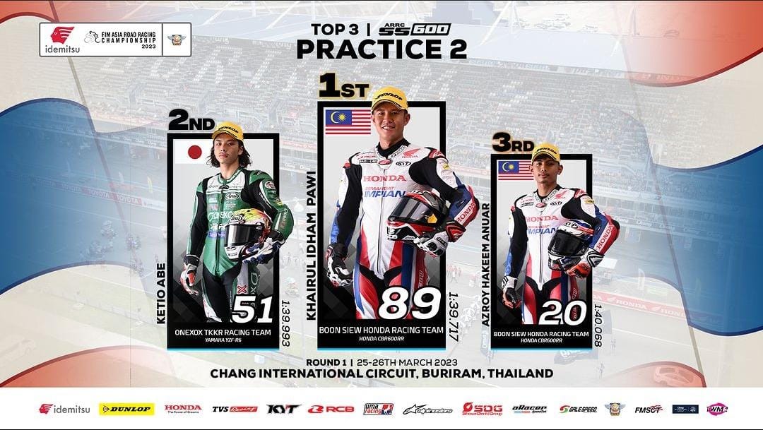 OtomotifZone.com – Jakarta. Perbaikan pasti selalu dilakukan tim untuk hadapi sesi berikutnya. Ini yang terjadi pada ARRC putaran 1 yang berlangsung (24-26/3/23) di Sirkuit Chang Internasional, Buriram, Thailand. Pebalap dan tim pastinya ingin mendapatkan hasil baik setiap sesinya. Seperti pemberitaan sebelumnya di FP1, pada FP2 Idham masih belum tergoyangkan diposisi pertama.
