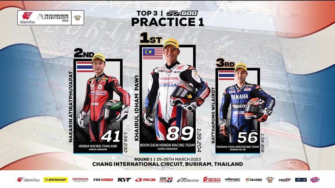 OtomotifZone.com – Jakarta. Gelaran Asia Road Racing Championship 2023 sudah memasuki babak pertama. Yang mana putaran pertama mereka berlangsung (24-26/3/23) di Sirkuit Chang Internasional Buriram, Thailand. Pada hari pertama sesi latihan resmi atau Free Practice dijalankan. Pada sesi FP1 pebalap tuan rumah berjaya. Namun Idham pawi tercepat di kelas SS600.
