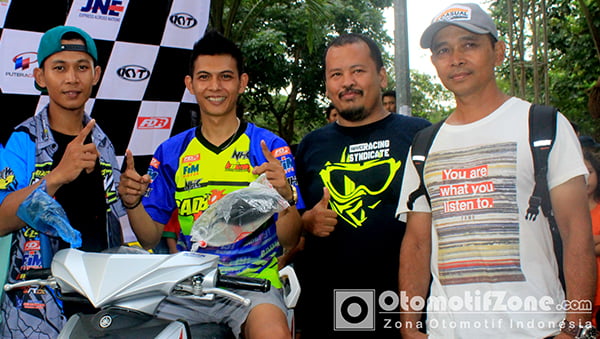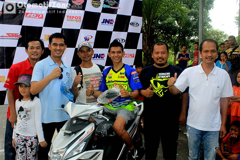 “Allhamdulilah memang sudah rejeki, lawan saya di depan mengalami putus v-belt dengan itu membantu memudahkan saya untuk finish, tekstur aspal sangat enak, dan di R4 itu habis poll turunan sedikit dan belok, itu harus kuat pegang rem karna kalo engga bisa bisa jatoh, saya sih berharap pejalanan race ini hujan” Ungkap Asep Bedun.