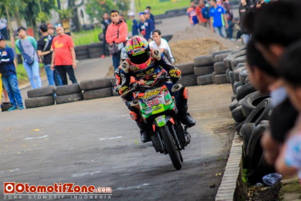 “ Balapan kali ini saya dibuat geram lantaran pembalap di posisi terakhir malah nutup line saya, membuat saya terhambat, makin dekat sama lawan yang dibelakang saya juga jadinya” ujar Bedun sembari muka kesalnya.