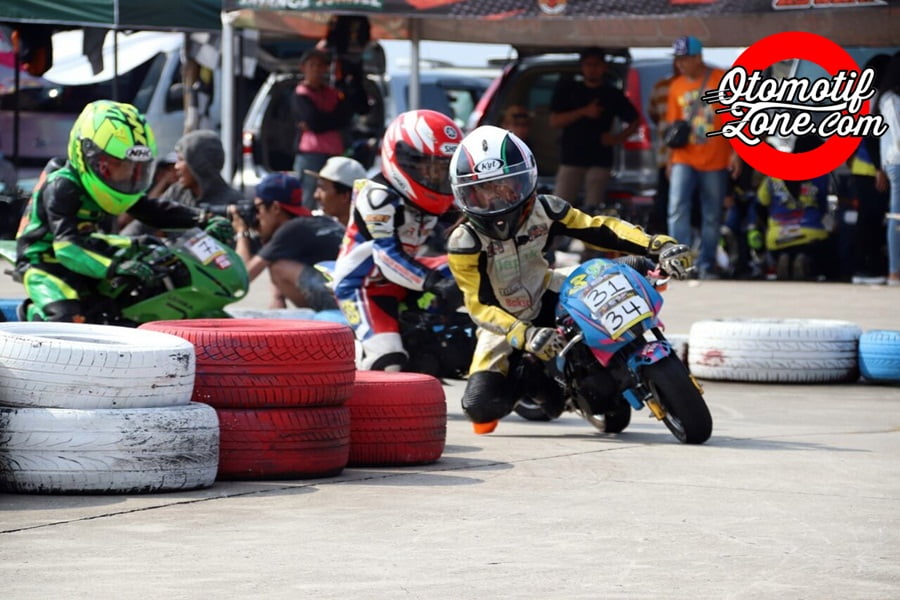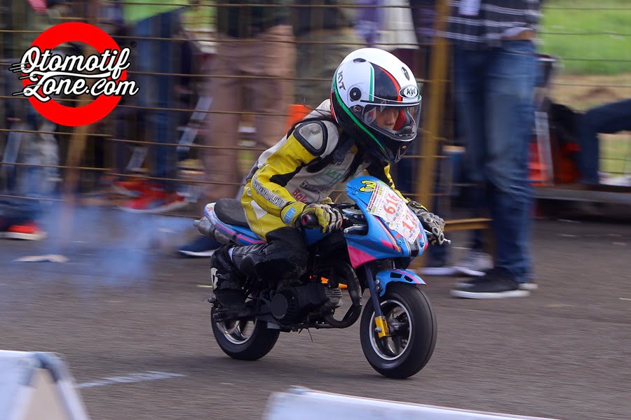 “ Saya sengaja sedang kejar jam terbang si Astrid mas di ajang balap. Kemarin ikut balap Drag sekalian nyeting motor mas. Jadi kita ikuti gelaran Drag yang kebetulan finalnya di gelar pada hari sabtu. Dan pada hari minggunya kebetulan ada gelaran MiniGP yang memang porsi si anak. Jadi dari Cicangkal kita berangkat ke Bekasi,” ujar sang Ayah langsung kepada Otomotifzone.com