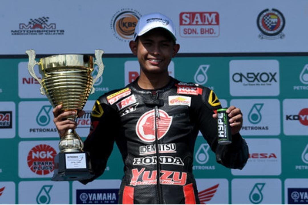 OtomotifZone.com – Jakarta. Azroy Hakeem Anuar memang sangat luar biasa dan tidak pernah absen sejak putaran pertama dari tahta podium juara yang membuat pebalap tim Idemitsu Honda Yuzy Racing ini sekarang menjadi pemuncak klasemen sementara Malaysian Cub Prix 2020 di kelas Cub Prix (CP150).