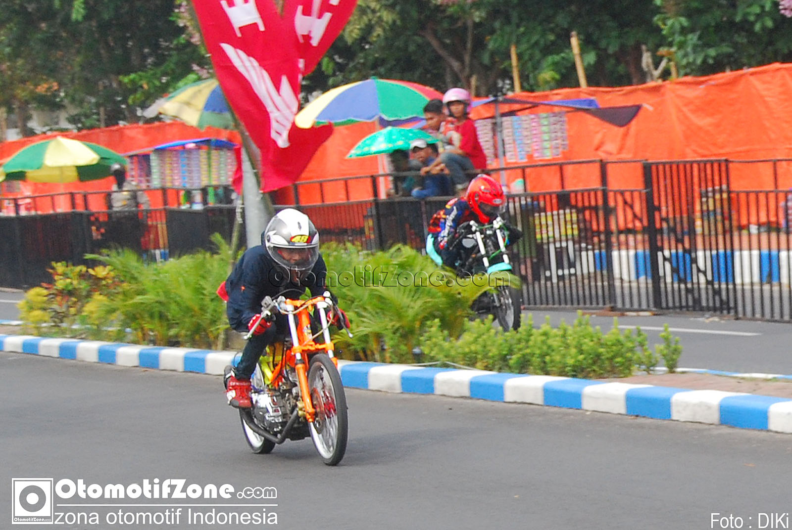 OtomotifZone.com – Bangkalan, Madura. Seri Kejuaraan Daerah Dragbike garapan IMI Jatim diawali dikota Bangkalan minggu kemarin (13/3). Ajang bergengsi bagi para dragster Jatim tersebut dibuka di 17 kelas yang dilombakan dan disesaki 371 starter yang datang dari berbagai kota di pulau Jawa ini.