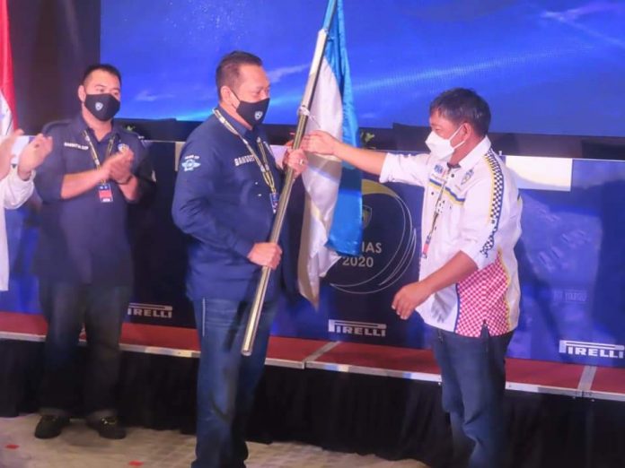 OtomotifZone.com – Bambang Soesatyo atau akrab di sapa Bamsoet, yang kini menjabat Ketua MPR RI dan telah terpilih sebagai Ketua Umum Ikatan Motor Indonesia (IMI) secara aklamasi resmi dilantik untuk masa jabatan periode 2021-2024, di Ballroom Hotel Novotel, Makassar, Sulawesi Selatan, Minggu (20/12/2020) yang ditandai dengan penyerahan pataka dari James Sumendap, Ketum IMI Sulawesi Utara yang menjadi Pimpinan Sidang dalam Musyawarah Nasional IMI IX 2020.