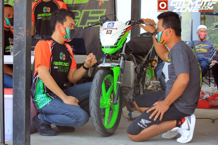” Dua duanya motot MP1. Yang GTR merupakan motor garapan saya untuk tim BKJU dan yang Honda Sonic merupakan mesin pribadi saya. Dan sebenarnya ini kerjasama saya dan JC pertama di Road race. Kalau mesin mesin GTX garapan saya sudah kerjasama dengan JC,” ujar Kupret langsung kepada Otomotifzone.