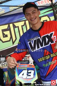 ” sempat tersusul oleh Ari Ramdhani dikarenakan terhalang sama yang overlap, jadinya terpaksa harus fight lagi sama Ari untuk memperjuangkan di lap terakhir” ujar bebeto dengan sangat bahagia mendapat hasil yang maksimal di sirkuit MD Ciparay Cimerak Pangandaran.