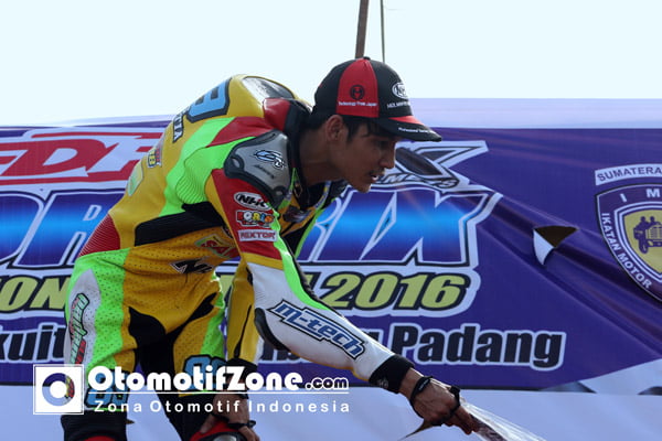 OtomotifZone.com-Padang, Sumbar. Nasib baik belum memayungi Becky NR ajang final MP2 Kejurnas MotorPrix region 1 2016 seri 1 Padang Minggu sore ini (27/3), hampir 2/3 putaran dari total 25 lap harus menerima nasib ketika tiba-tiba saat memasuki tikungan ke-3 sirkuit Lanud Tabing Kota Padang tungganannya mendadak tidak bisa diajak manuver dan dengan mudah akhirnya dilibas Dimas Popo Aditya yang selalu menguntit dibelakangnya.