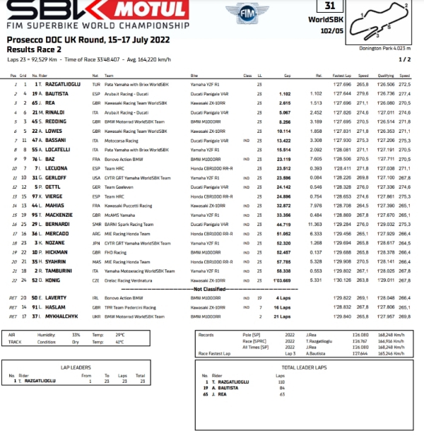 OtomotifZone.com-Inggris. Menang race 1, lanjut menang superpole race, dan disambung lagi juara pada race 2 WorldSBK Donington Park 2022. Itulah hasil special Toprak Razgatliouglu bersama Pata Yamaha Brixx yang full race menjadi penguasa seri 5 perjalanan balap motor produksi massal berkapasitas gambot ini.