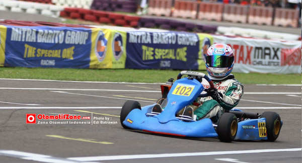 OtomotifZone.com-Sentul. Bermain Aman, Cerdas dan saling Support, pegokart UI Racing Team DKI Timothy Antonio wijaya berhasil menangi micro max ajang rotax Max Challenge round 4 yang digelar di sirkuit Karting Sentul Bogor Minggu 31 Agustus 2014.