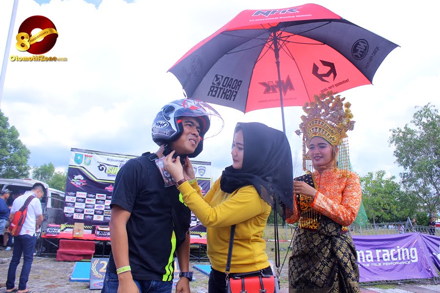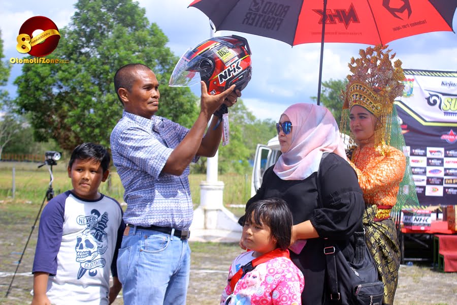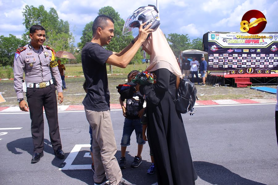 ” Iya, itu emang program kita. Selain buat meningkatkan kesadaran masyarakat akan pentingnya menggunakan helm saat berkendara, kita juga ingin bikin NHK lebih dekat dgn masyarakat melalui SCP, dan alhamdulillah tiap daerah respon nya positif banget,” ujar Arissandro pihak IRC Sumatera Cup Prix langsung kepada Otomotifzone
