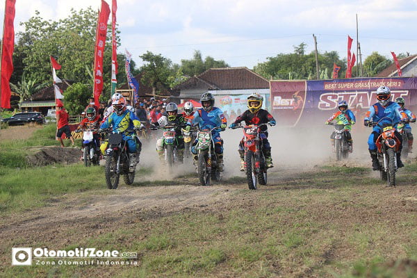 OtomotifZone.com-Sukoharjo. Tempat yang berada tepat di selatan kota Surakarta ini terus berjuang untuk turut memeriahkan arena grasstrack khususnya Soloraya. Bengawan Sport Trail (BEST) yang menjadi penggagas event ini berperan sebagai klub trail yang aktif berusaha mencari tempat melampiaskan kegiatan balap yang sekarang lumayan sulit untuk mencari tempat yang bisa dijadikan sirkuit. BEST Supergrasstrack sirkuit Sonorejo, Sukoharjo – Jawa Tengah 10 Desember 2017 mewakili atau memberikan wadah yang bisa menampung kebebasan untuk balap khususnya area Solo.