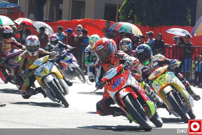 OtomotifZone.com – Ponorogo. Seri kejuaraan BG – Open Roadrace tiba juga digelar dikota Reog Ponorogo kemarin (14/6). Tetap Alun – alun kota Ponorogo menjadi sirkuit dadakan dari 263 starter yang terbagi di 15 kelas yang dilombakan. “Khusus di seri kota Ponorogo ini kita bekerjasama dengan organizer lokal Ponorogo dari tim sukses Pilkada Calon Bupati Ponorogo kubu H. Ipong Muchlissoni, dari janji-janji yang diorasikan saat acara pembukaan menyinggung penyederhanaan birokrasi kepengurusan segala macam perijinan. Hanya bagaimana nasib kedepan kabupaten Ponorogo akankah memiliki sirkuit permanen ?,” buka Totok Suyanto Ketua Pelaksana dari BG Sport Club.