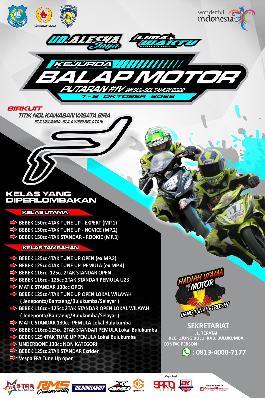 OtomotifZone.com – Sulawesi Selatan. Kejuaraan Daerah Balap Motor Putaran 4 IMI Sulawesi Selatan tahun 2022, berlangsung minggu ini, bertempat di sirkuit titik nol kawasan wisata Bira jadi venue pilihan penyelenggaraan event.