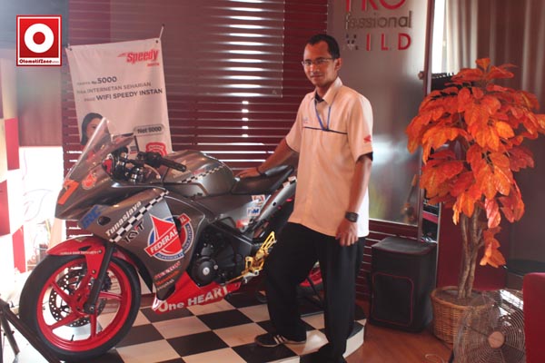 OtomotifZone.com – Magelang. Perbedaan pendapat ide dan kreasi itu sah-sah saja dilakukan, seperti yang sudah dilakukan oleh Hengki Aries. Pemuda asal Salatiga ini dulunya juga seorang racer balap di Team Honda Tunasjaya Federal Oil KYT IRC. Setelah pensiun tahun 2012 dari dunia balap Hengki Aries mencoba peruntungan di dunia bisnis, tentu dunia yang dipilih tidak jauh-jauh dari balapan. “Walaupun dunia balap sudah aku tinggalkan tapi semangat balap masih ada di hati sepeti slogannya Honda One Heart,”jelas Hengki Aries owner Coffe Toffe.