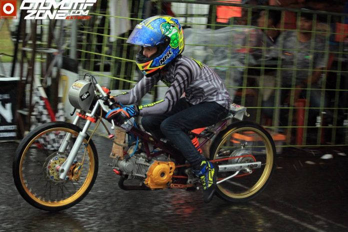 OtomotifZone.com – Banten. Setelah Dwi Batank, kali ini Osenk Tanxian buktikan kualitas ban IRC dilintasan basah Drag Bike BODISA 2019 Malam Tahun Baru (31/12) di Sirkuit NP Lapangan Terbang TNI AU Cicangkal. Kali ini Osenk membuktikan dikelas Bebek 4T 200 cc TU Sleep Engine. Power mesin lebih besar ban tetap yahud digunakan di lintasan basah.