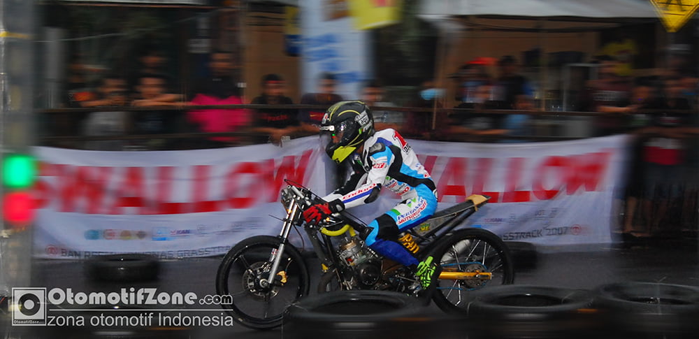 OtomotifZone.com – Tulungagung, Seri awal Kejuaraan Nasional Dragbike se Region 2 Jawa dimulai di Tulungagung Jawatimur kemarin(26/3). Ajang bergengsi dragster se Jawa garapan BOLS club IMI pengprov Jatim tersebut bertajuk Bupati Cup Swallow Dragbike – Kejurnas Region 2 Jawa Putaran 1 mengambil sirkuit di Jalan A. Yani sisi barat. Sirkuit yang berada ditengah kota Tulungagung tersebut sebenarnya bukan baru, namun memakai sisi A.Yani menuju ke arah Barat. “ Jika pada biasanya kita memakai di Jalan A.Yani timur yakni depan Kantor Pem Kab Tulungagung ke arah timur, namun karena trek pengereman kurang panjang, maka di kejurnas seri 1 tahun 2017 ini berpindah ke arah barat hampir perempatan menuju kuto anyar “ terang AR.Mustopa selaku RC Pelaksana gelaran.