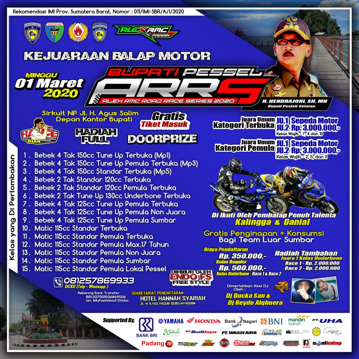 OtomotifZone.com-Sumatera Barat. Kegigihan sang ketua penyelanggara Alex RMC untuk menggelar event berkelas dan berkualitas ini. sebab di ivent ini penyelenggara siap memanjakan mata dan lambung peserta luar dari Sumatera Barat