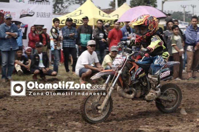 OtomotifZone.com-Bandung. Mini Mini biti yaa !!! Ini kelas paling termungil kapasitas cylindernya, tapi kalau urusan nyalinya boleh diadu sob. Kelas Special Engine 50cc menjadi perhatian para penonton khususnya. Postur mungil bisa saja terpelanting dari kuda besi ini. M Atar asal kota Bandung menjadi juara dikelas SE 50cc dan mendapatkan point penuh dari moto 1 dan moto 2. Rupanya M. Atar merupakan anak dari Hilman Laksana yang juga penggila garuk tanah baik motocross maupun enduro. Diusianya yang baru menginjak usia 6 tahun ini baru pertama kali ikut balapan resmi di motocross.
