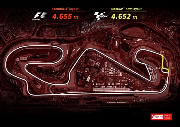 Dengan kebutuhan dari FIM, perubahan yang terjadi pada sirkuit Catalunya ini meliputi dua hal. Pertama penggunaan tata letak F! pada tikungan 10. Pemunculan kembali tikungan 10 dirasa akan mengurangi tingkat kecelakaan ketika balapan berlangsung.