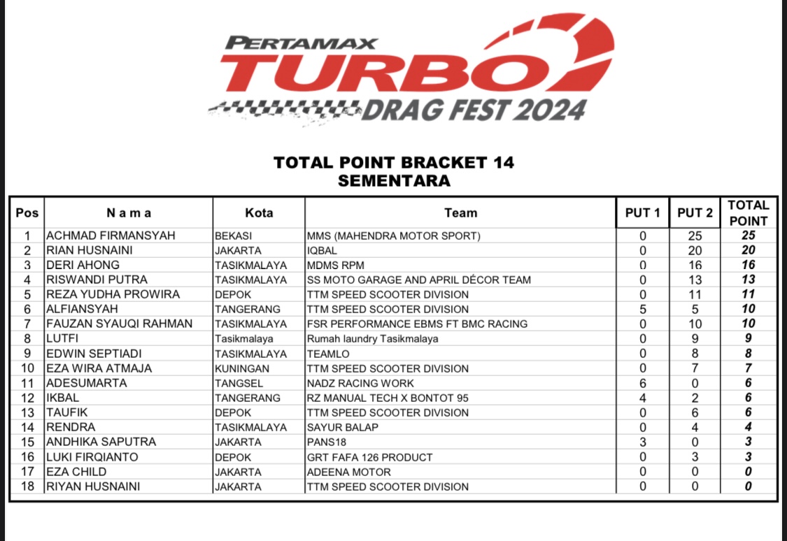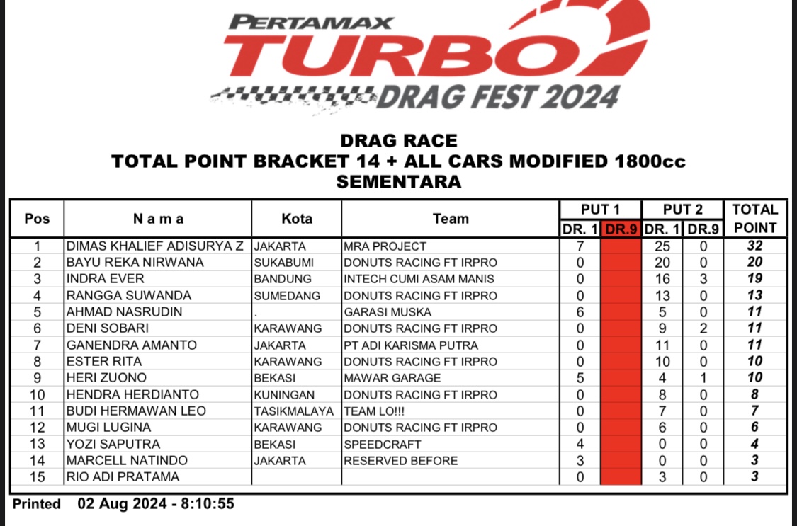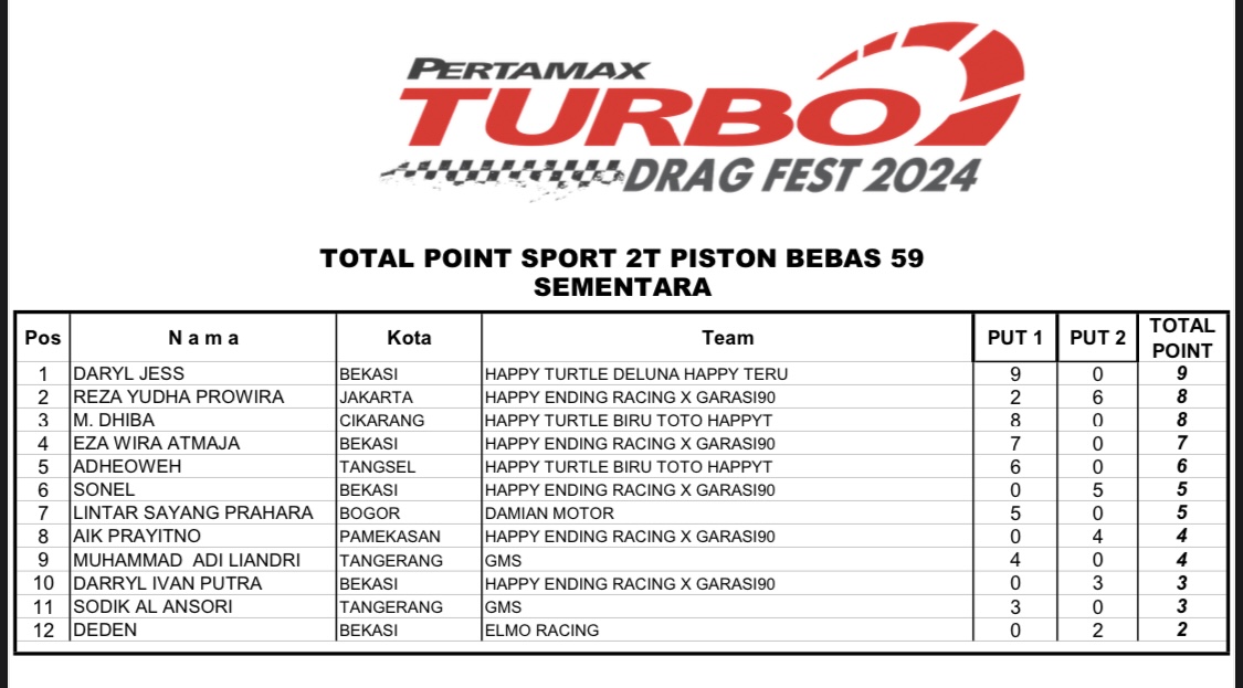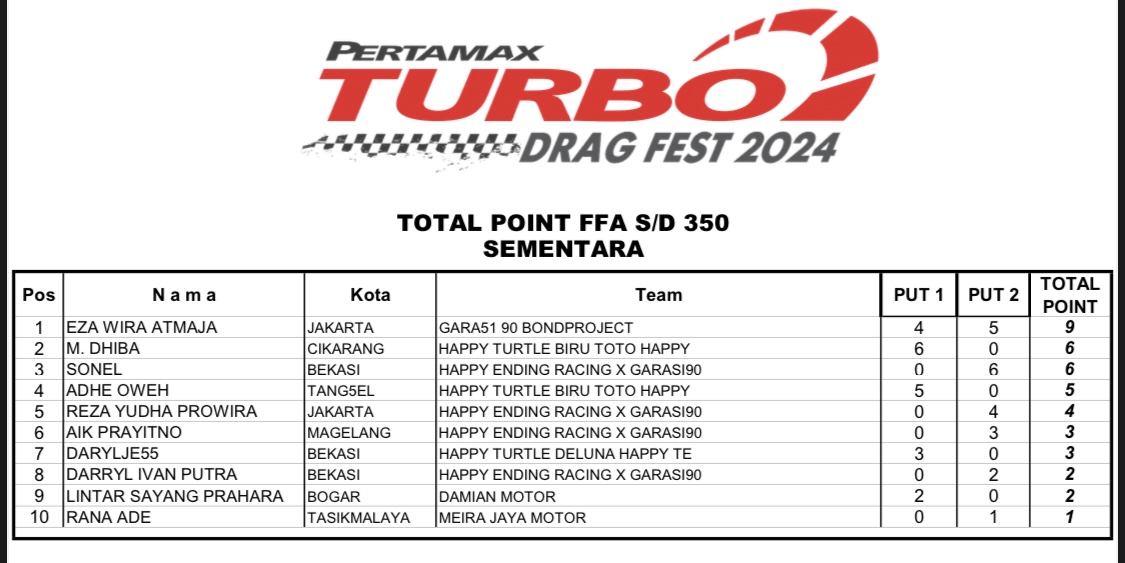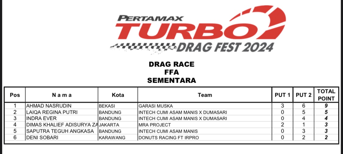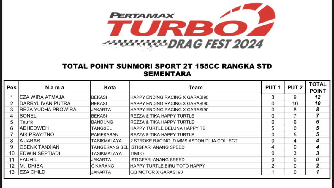 Apalagi tentunya untuk nama-nama yang terpampang, dalam catatan putaran 1, tidak ingin melewatkan gelaran seri 2 dari Pertamax Turbo itu. Sebab syarat dari akan berhasil sah sebagai juara, ialah minimal harus mengikuti 2 seri dari total 3 seri Pertamax Turbo Drag Fest 2024.